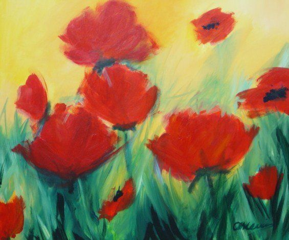 Veld met klaprozen acryl 60 x 90 cm