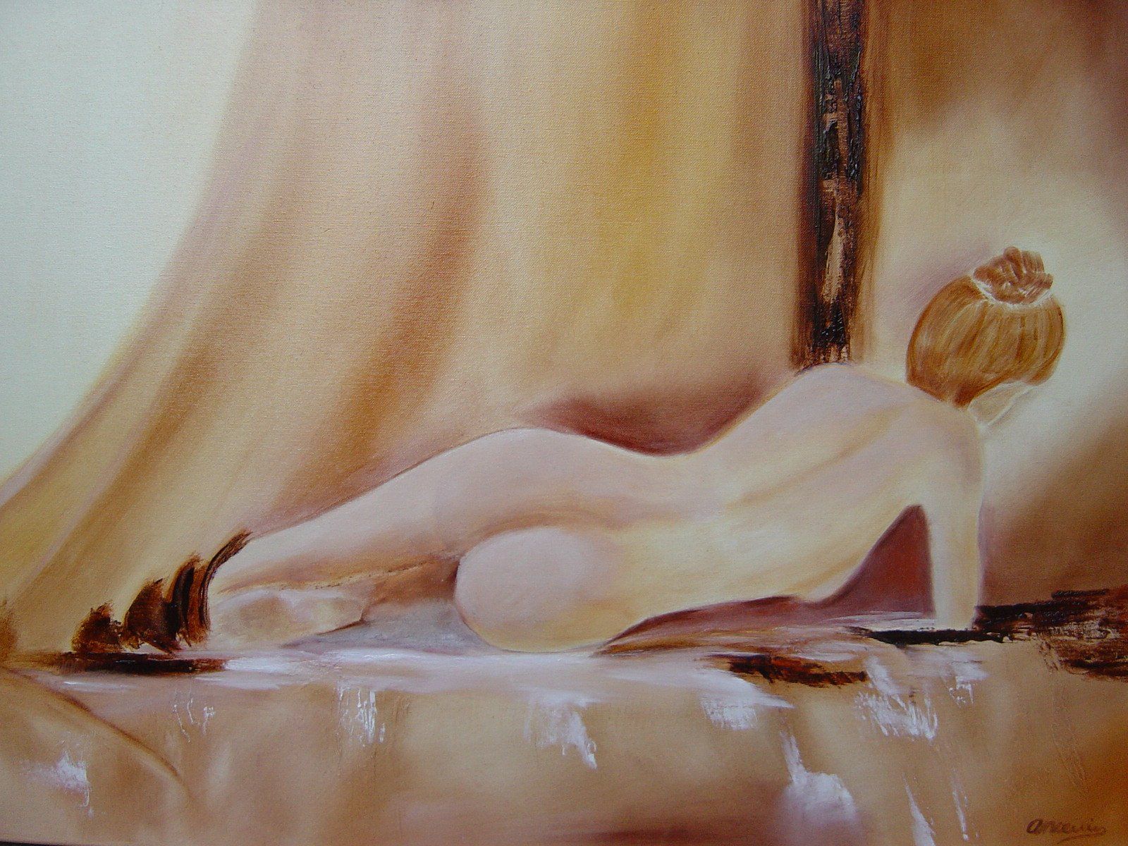 Liggend naakt olieverf 60 x 90 cm