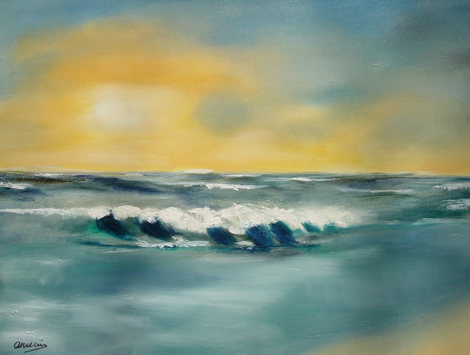 De golf olieverf 60 x 90 cm