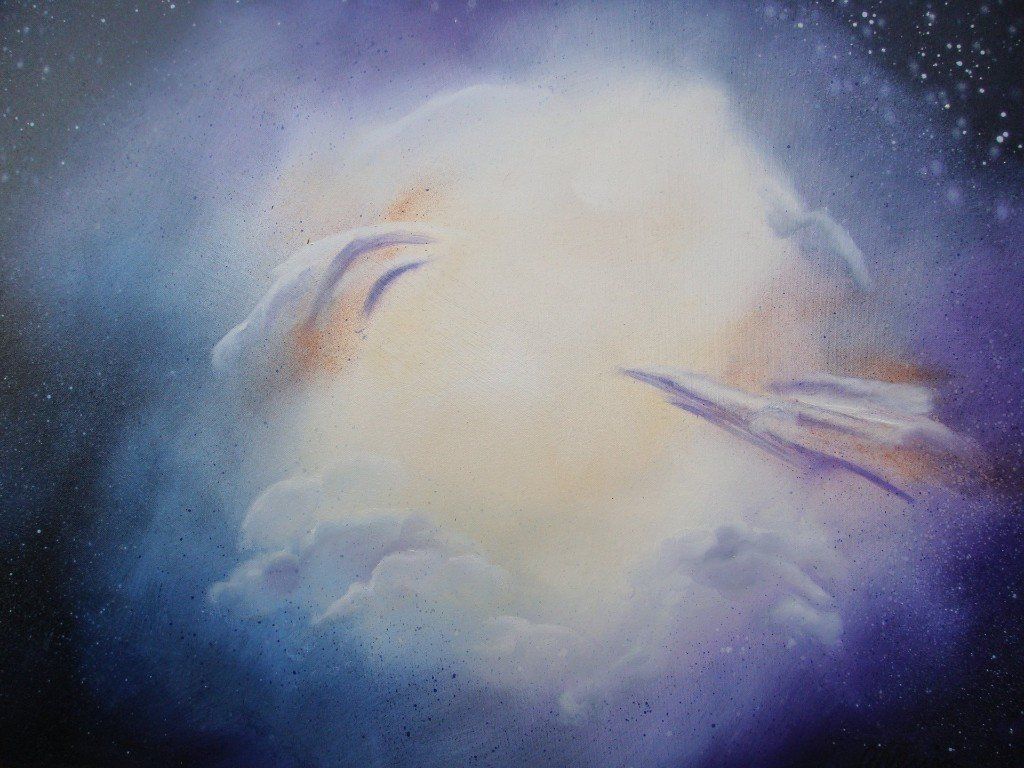 Blik in het heelal olieverf 60 x 90 cm