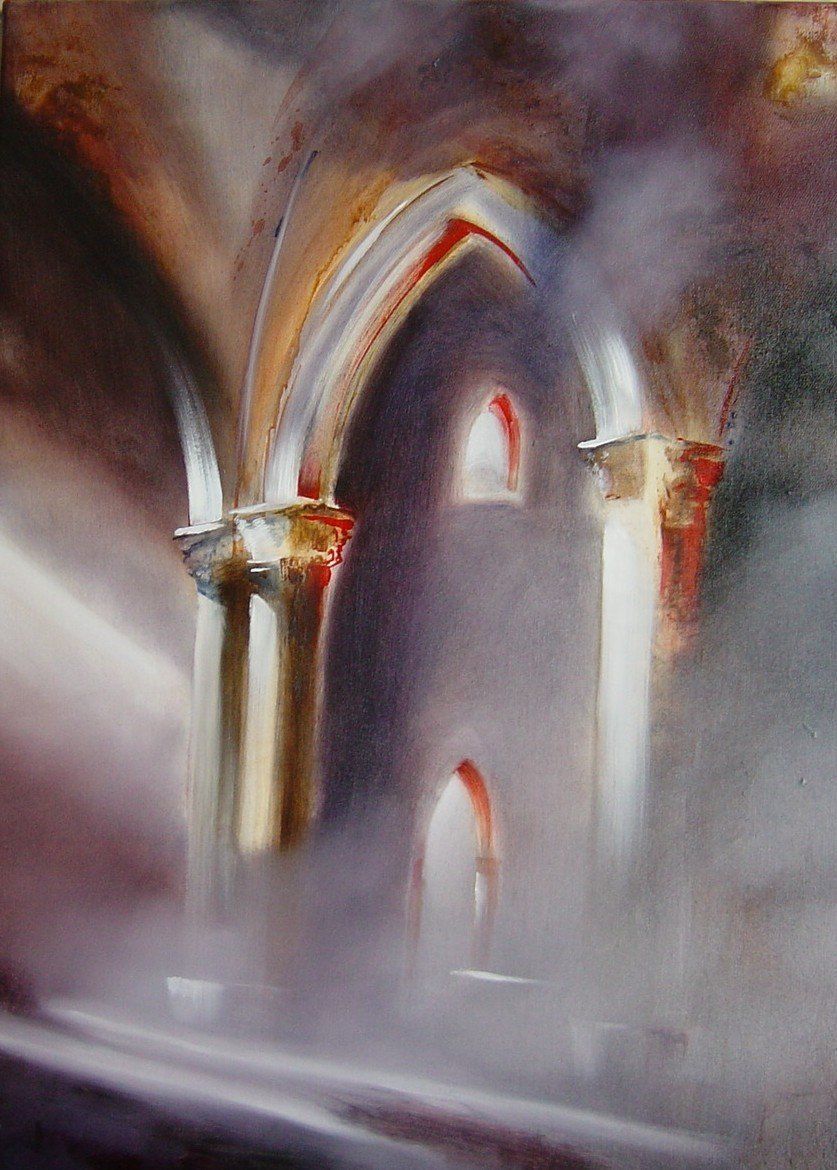 Kerkinterieur oliverf 100 x 80 cm